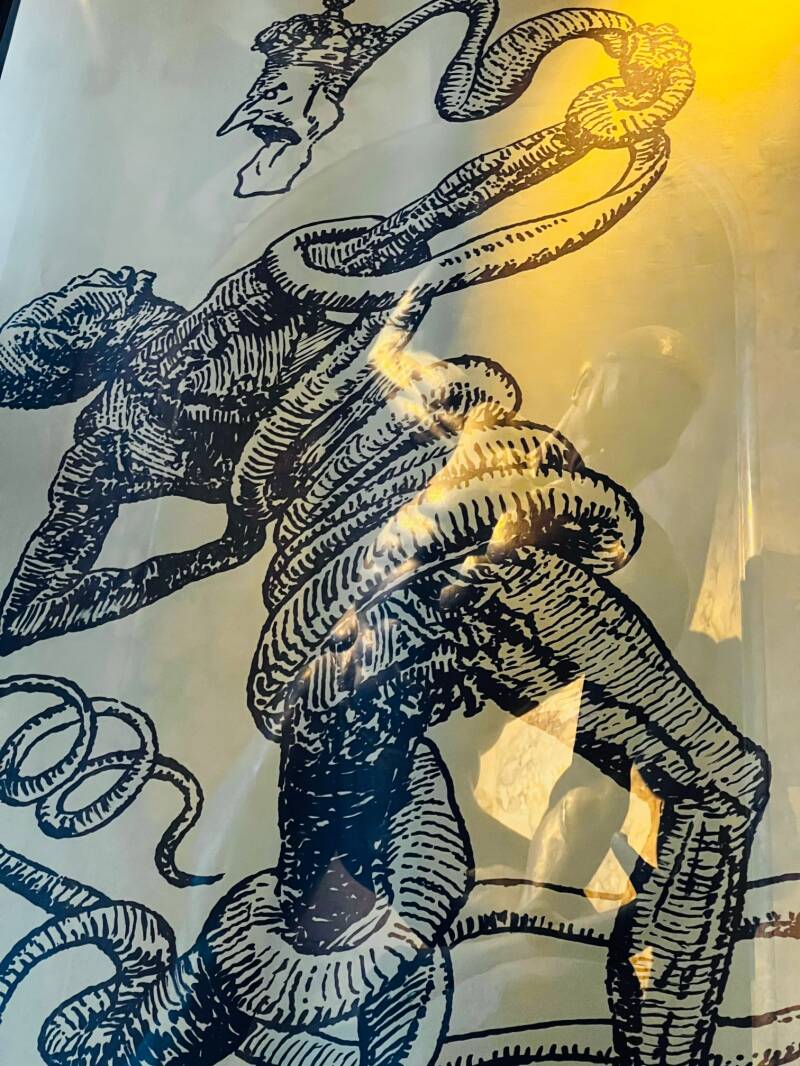Met Gerold Guthman, Anna Maria Versloot, Rutger Buiter doen we voor een voorstelling die we in 2025 gaan ontwikkelen voor Vis a Vis onderzoek naar deze gebeurtenissen, omdat het onderdeel is van de geschiedenis die onder de personages woekert en brandt. Daarom waren we woensdag 13 november in Tervuren, bij het Afrika Museum, dat gevestigd is in de voormalige megalomanie van Leopold. Schuldig landschap.