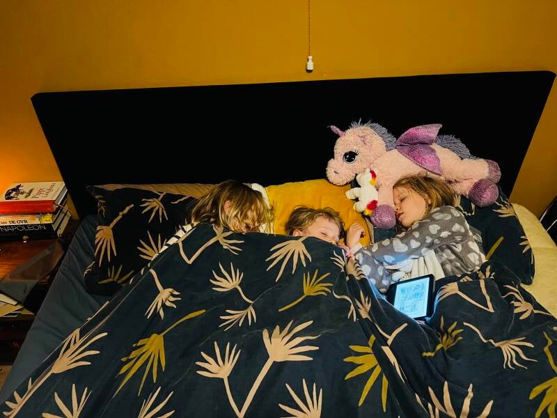 Dit weekend fungerend als eenoudergezin (met de andere ouder heerlijk in Venetië) zitten wij aan de Pannenkoeken, Popcorn, Patat en een Propvol bed. Morgen maar even heel veel groenten eten.