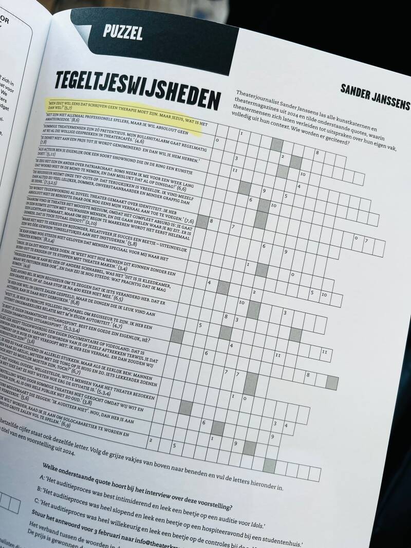 Ik zag de quote als eerste opgave in de puzzel van de TheaterMaker en dacht, dat is een interessante gedachte, die had ik zelf kunnen denken.