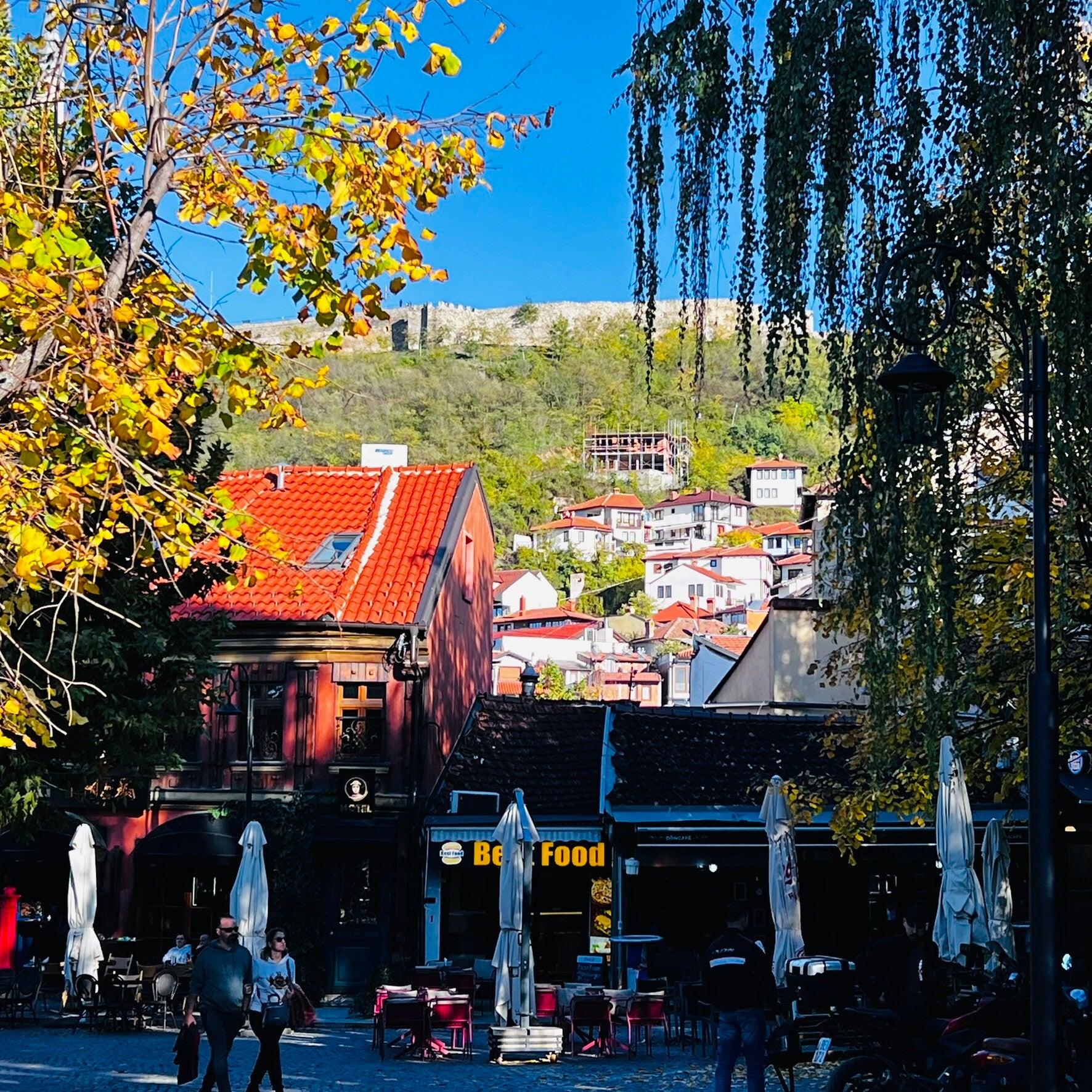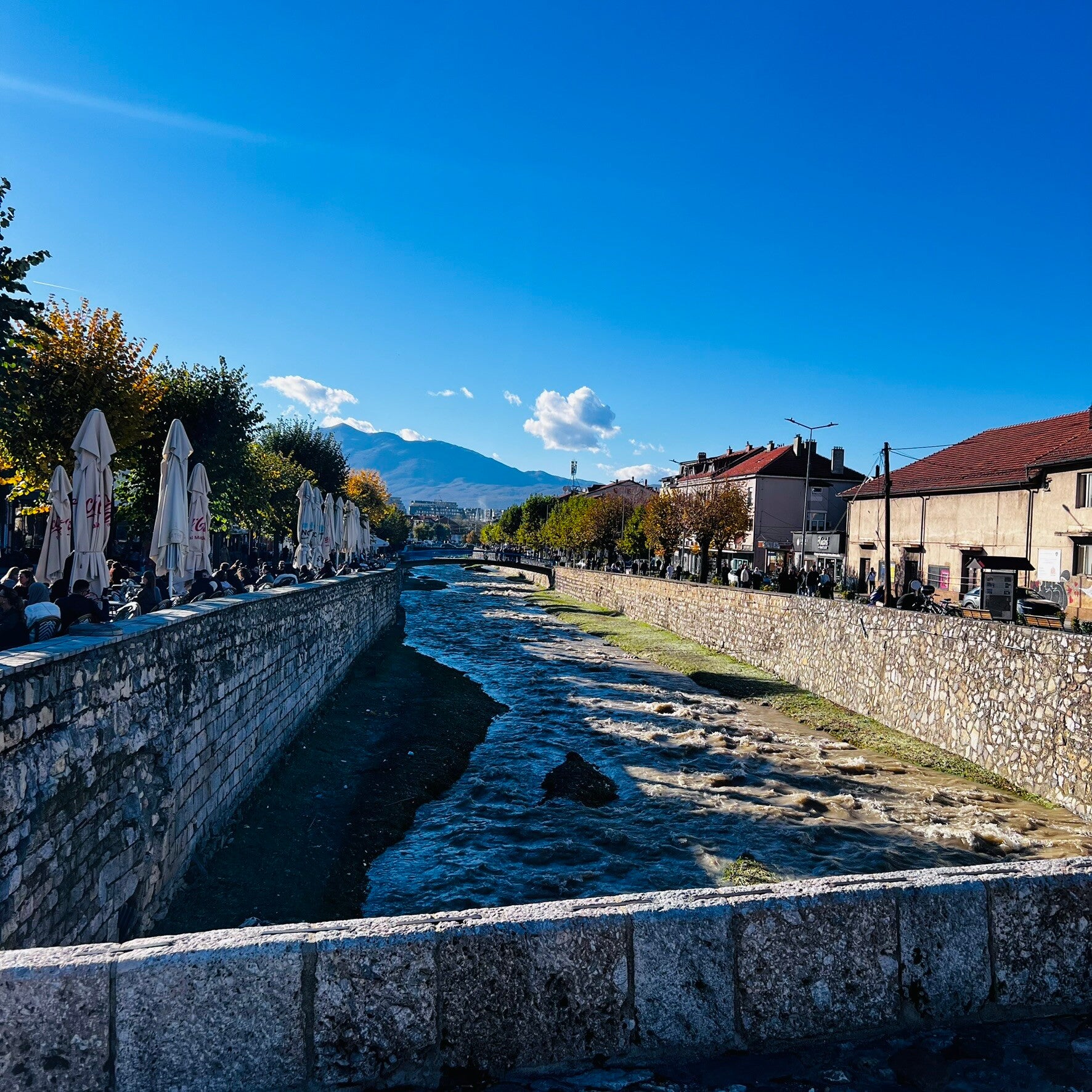 Prizren kijkt uit op een besneeuwde top en vele minaretten. Je kan kiezen tussen Turkse en Italiaanse koffie. Op de burcht staat een klein kanonnetje op de stad gericht. Het UCK torent met grote letters boven de stad en in ieder souvenirwinkeltje kan je shirts of koelkastmagneten van de ontbonden guerrillabeweging kopen. De oude brug verbindt het centrum. Het wemelt van de winkeltjes met gouden sieraden en zeer beglitterde jurken. Overal op de warme stenen liggen soezende honden. Mijn hotel is verstopt in een parkeergarage. Bijna overal hebben ze dezelfde wifi-code, 12345678 (een keer weet het af en moest er een 9 achter).