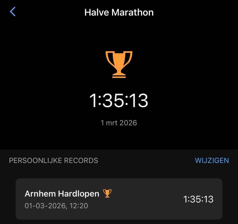 Om 'm in 90 minuten te rennen moet ik er nog 5 minuten en 13 seconden afschaven...