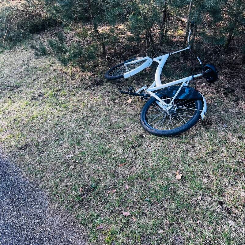 Wanneer de eerste tekenen van schemering het park insluipen, fietsen de bezoekers van de Hoge Veluwe richting uitgang. Niet iedereen redt het - onderweg naar huis zien we links en rechts van het pad steeds vaker witte kinderfietsjes onbeheerd achtergelaten langs de weg liggen. De lugubere overblijfselen van nietsvermoedende minderjarigen die door de wolf van hun rijwiel gesleurd zijn en de bossen in zijn gesleept om als maaltje te dienen voor de roofdieren die uit de sprookjes zijn ontsnapt.