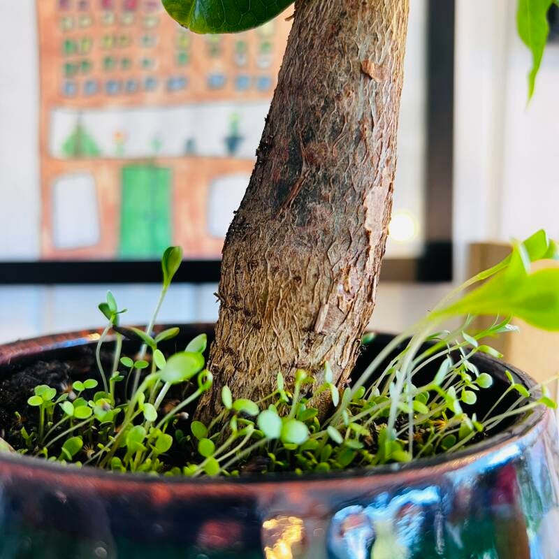 In de lente zaai ik gemengde bloemen in de bloempotten op mijn werkkamer en zie hoe al heel snel de belofte van kleur naar het licht toe groeit.