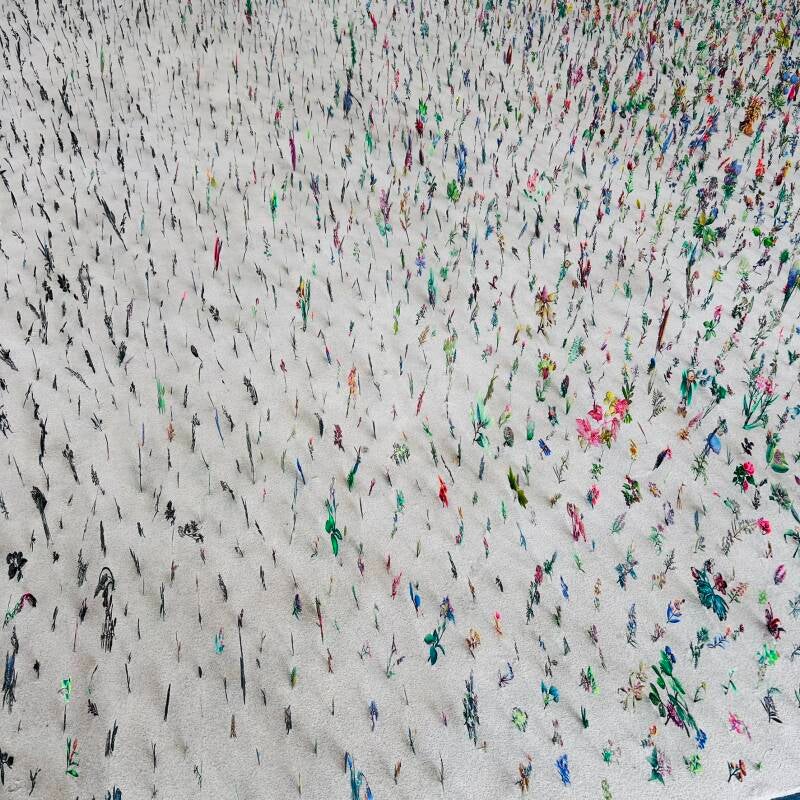 Op dit moment is in de kunsthal Flowers Forever te zien, met een bijzonder werk van een kunstenaar waarvan ik de naam weer even op moet zoeken; honderden stalen uitsnedes van bloemen die aan één kant grauw zijn, maar wanneer je om het enorme veld heen loopt zie je dat de andere kant kleurrijk is. Het doet me denken aan de affodillenvelden waar de gemiddelde mens na zijn dood naartoe gaat, volgens de oude Grieken - een plek met enkel grauwe nietszeggende bloempjes. Maar er is hoop; wanneer je even verder kijkt, blijkt er toch kleur te zijn.