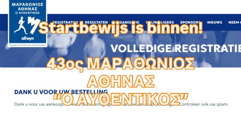Startbewijs binnen! Met het halve kantoor van Het NUT zaten we om 11:00 (12:00 Griekse tijd) klaar om ons in te schrijven voor de Marathon van Athene op 8 november - 'de authentieke' zoals ze 'm zelf noemen. En het is gelukt. Dit najaar lopen we in de voetstappen van Pheidippides van Maratón naar Athene - naar het Olympisch stadion.