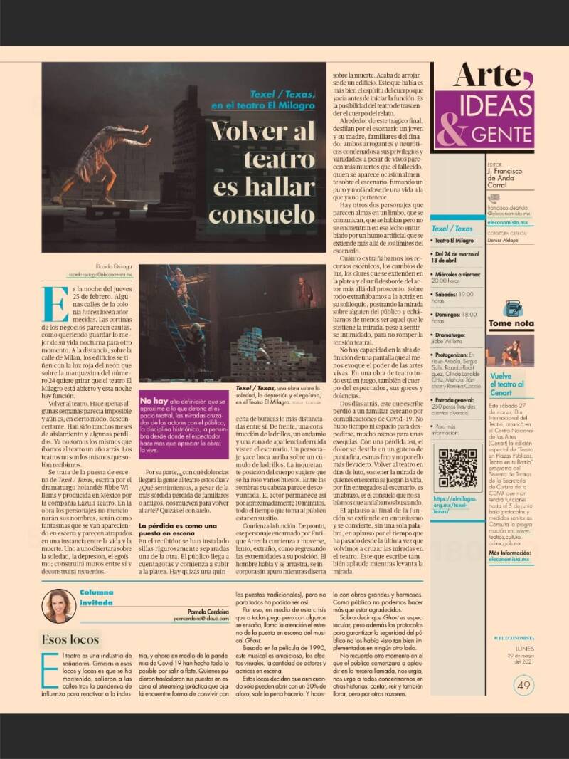 El Economista - Volver al teatro es hallar consuelo. (Teruggaan naar het theater is troost vinden)