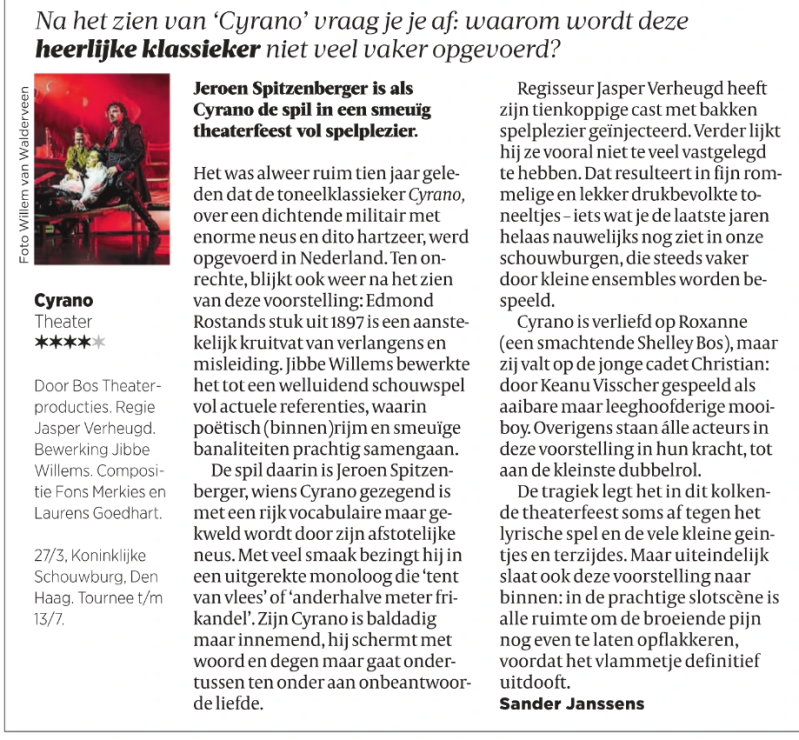 Volkskrant - Na het zien van 'Cyrano' vraag je je af: waarom wordt deze heerlijke klassieker niet veel vaker opgevoerd?