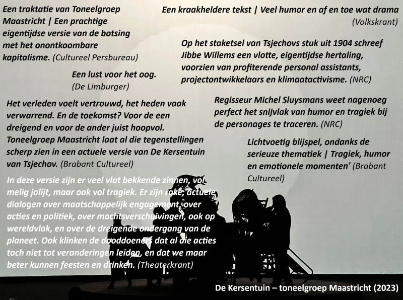 Texel/Texas es una obra compleja que abruma y encanta, cuestiona e invita a pensar, seduce e hipnotiza a un público que es exigido al límite. (Texel / Texas is een complex werk dat ons overweldigt en betovert, bevraagt en uitnodigt tot nadenken, verleidt en hypnotiseert een publiek dat tot het uiterste wordt gedreven.)